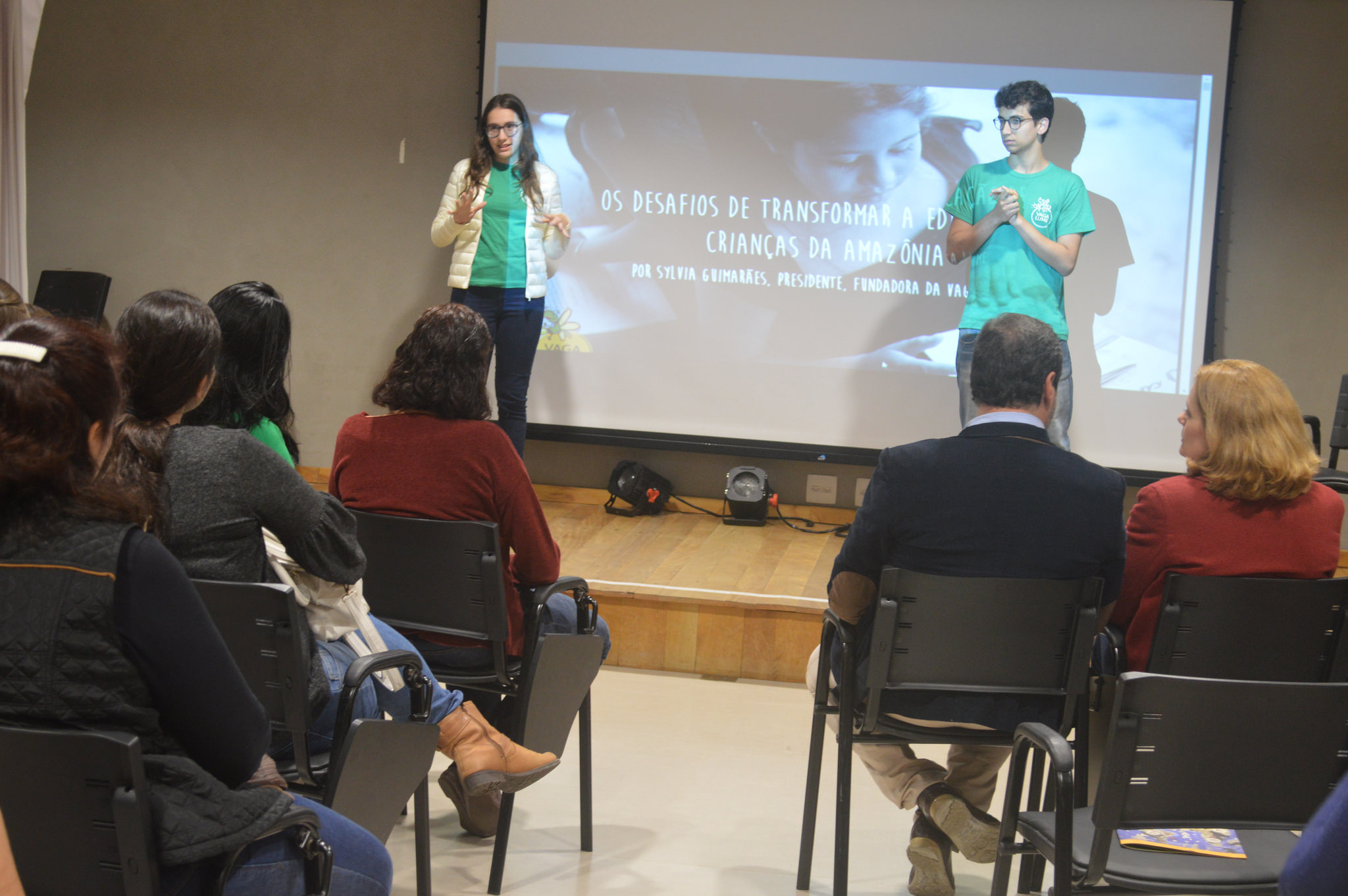 No 32º FormaSanti-pais, a fundadora da Associação Vaga Lume, Sylvia Guimarães, se juntou aos nossos alunos e ex-alunos participantes da Rede VagaLume para debater com a comunidade Santi os desafios de transformar a educação das crianças na Amazônia e o quão enriquecedoras são essas trocas entre jovens de São Paulo e da Amazônia Legal.