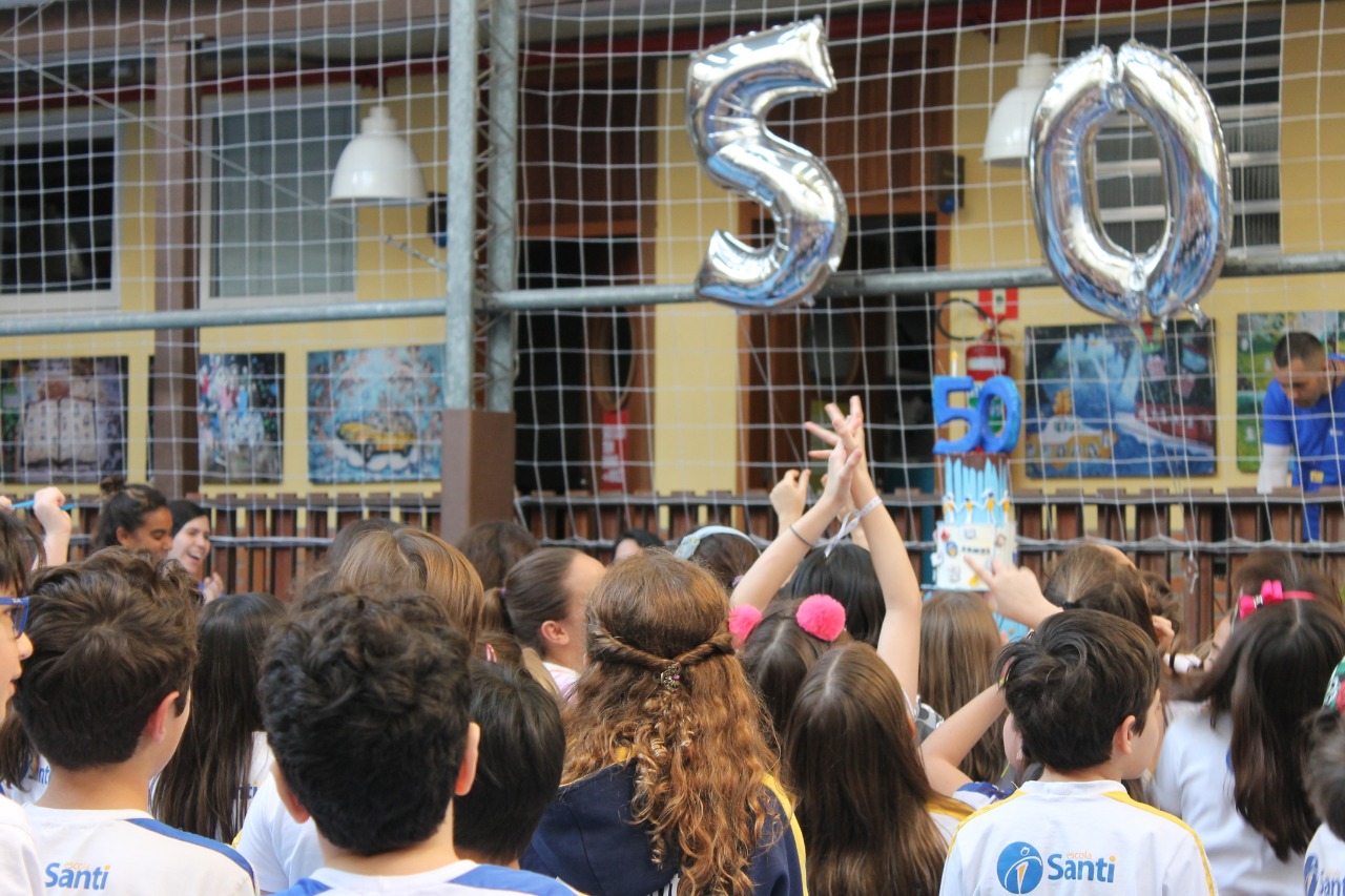 Confira as fotos de como foi o lançamento dos 50 anos da Santi para a equipe e os alunos.