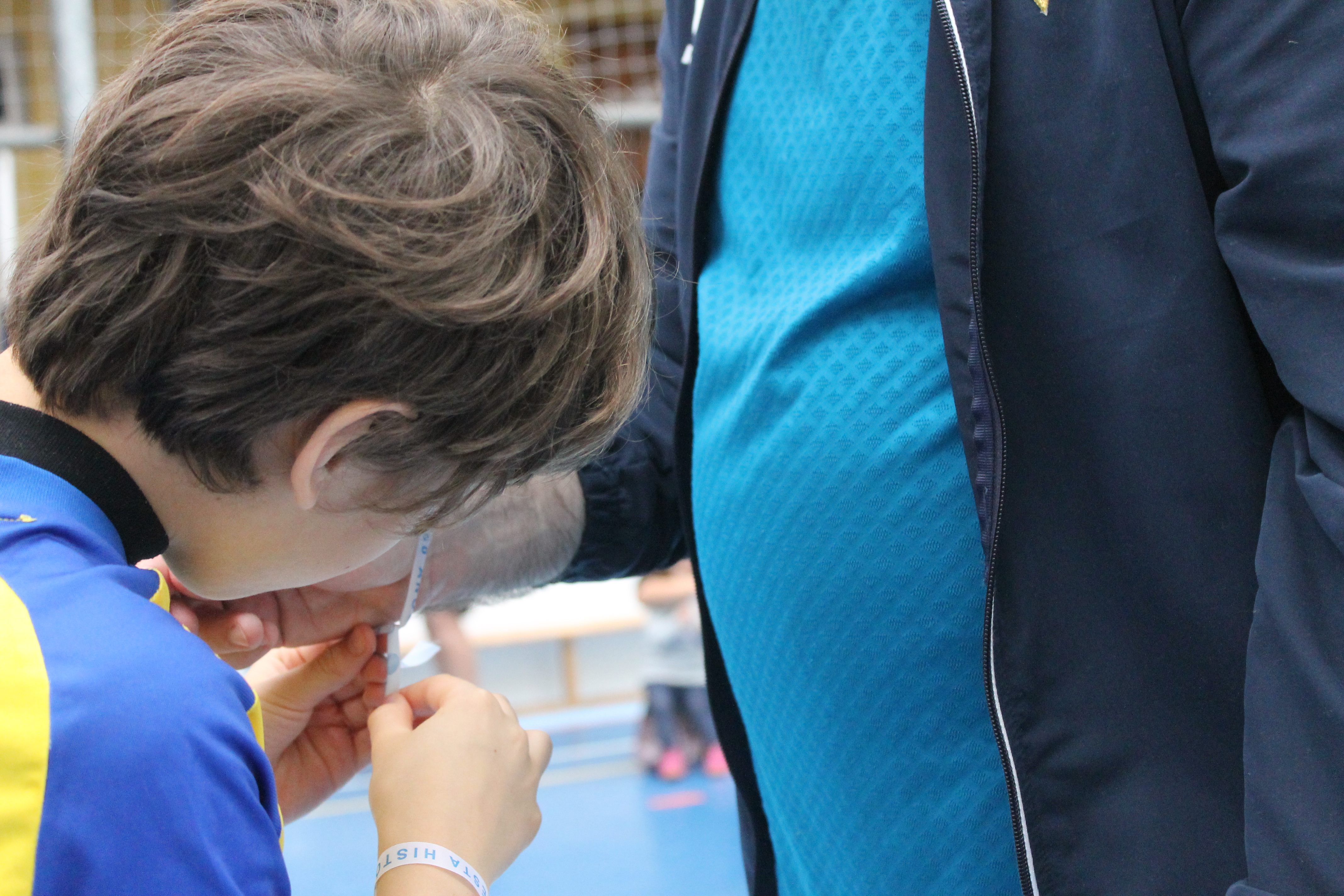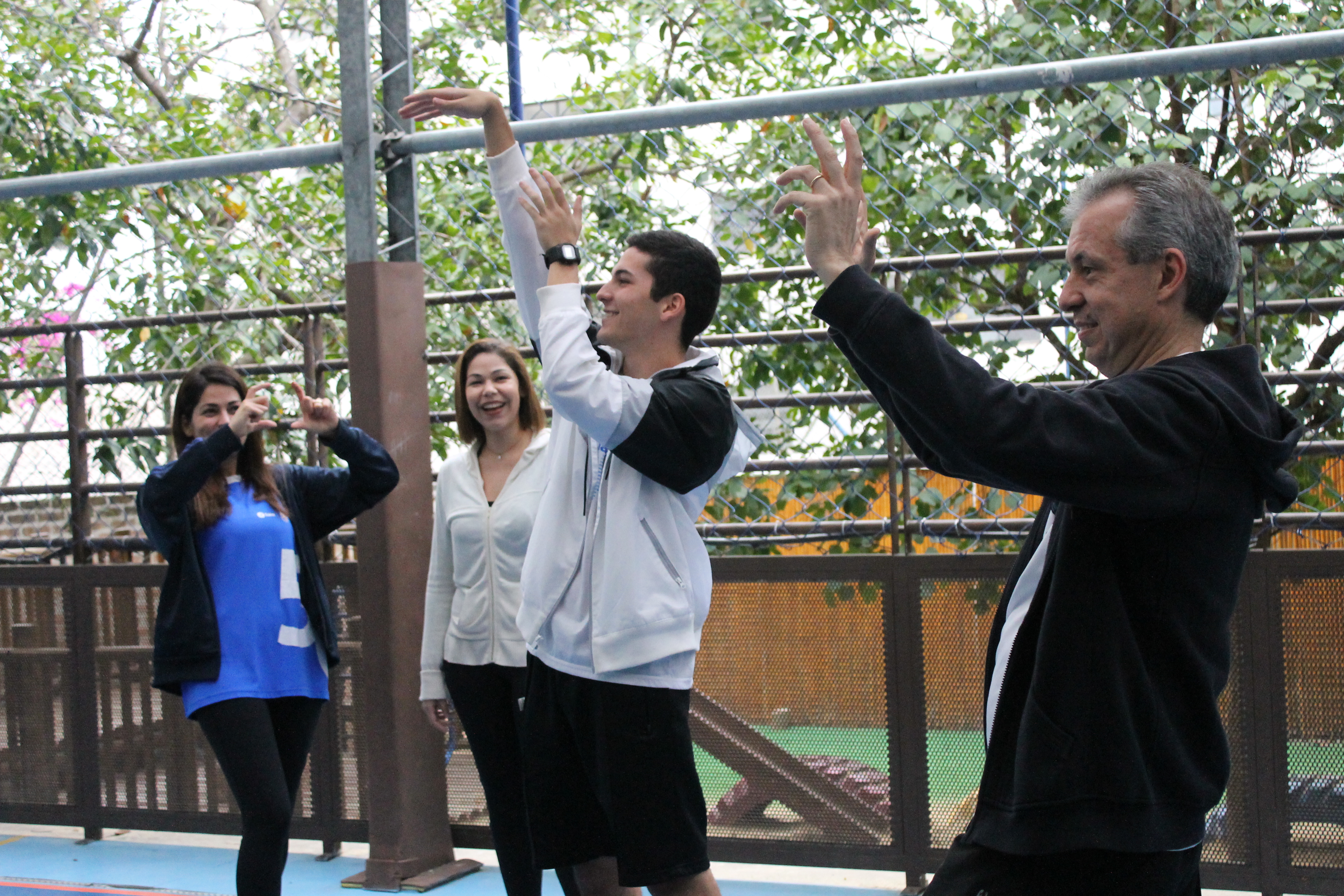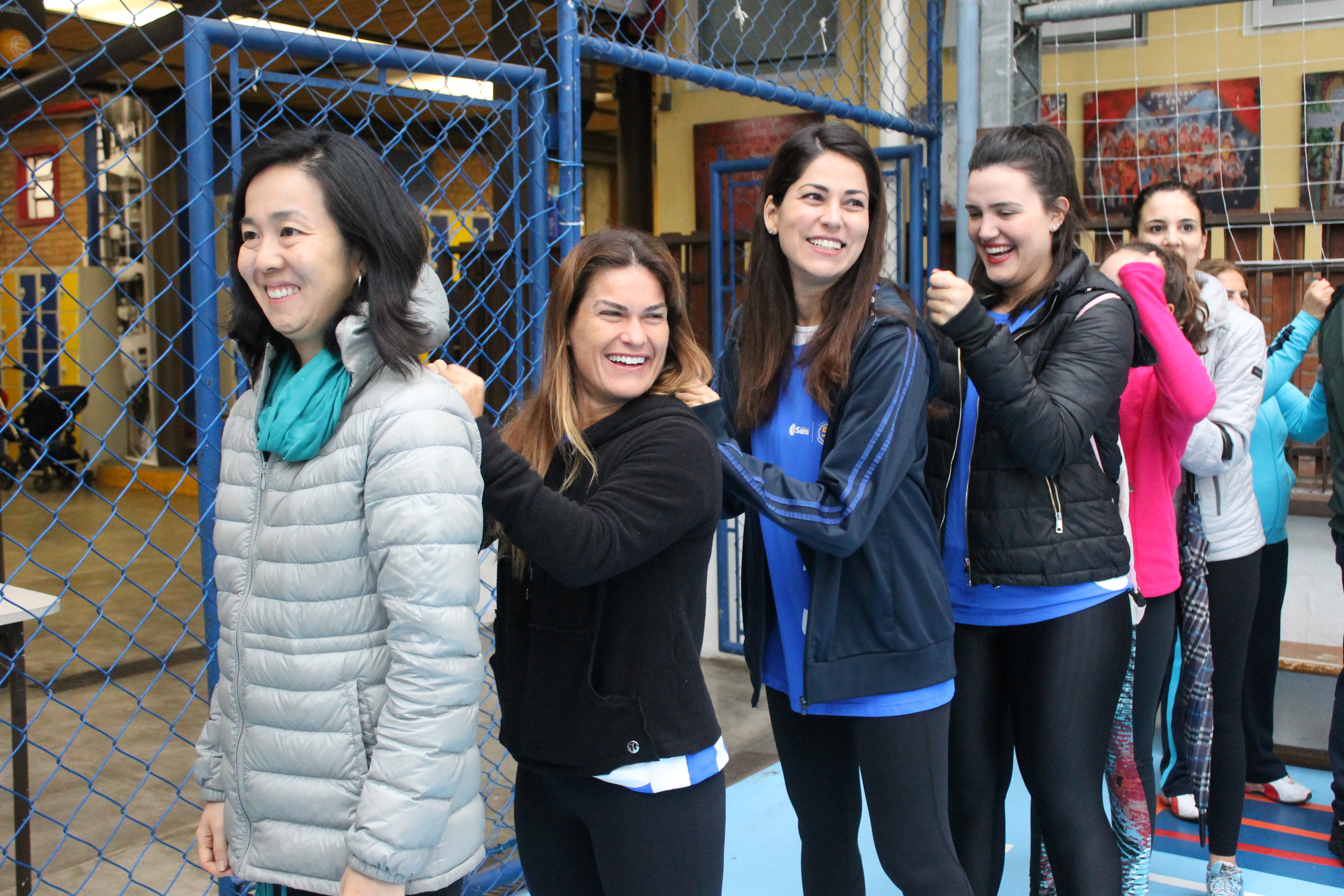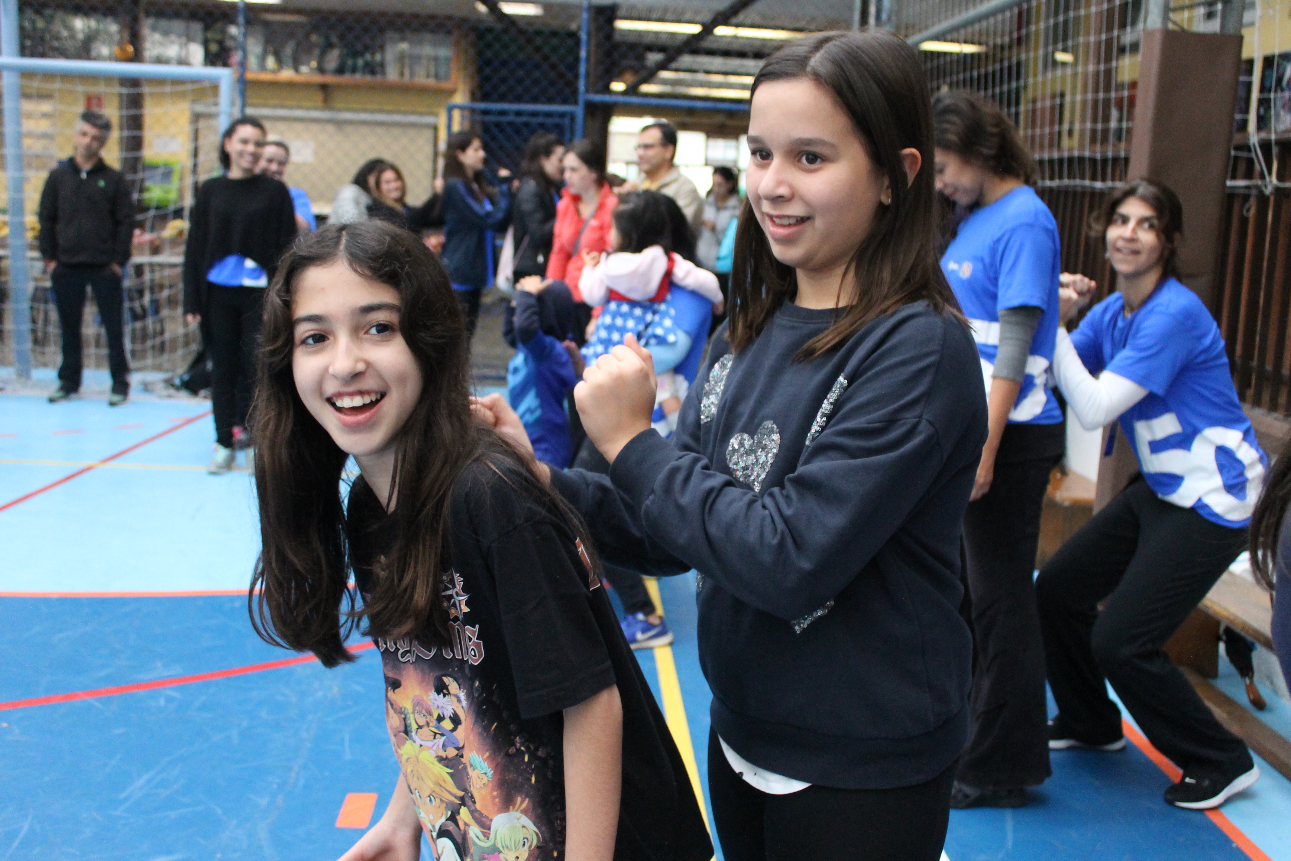 Com toda a comunidade reunida, começamos o evento com um aquecimento coletivo na quadra da Escola. Um momento de integração entre todos que estavam participando desta celebração.