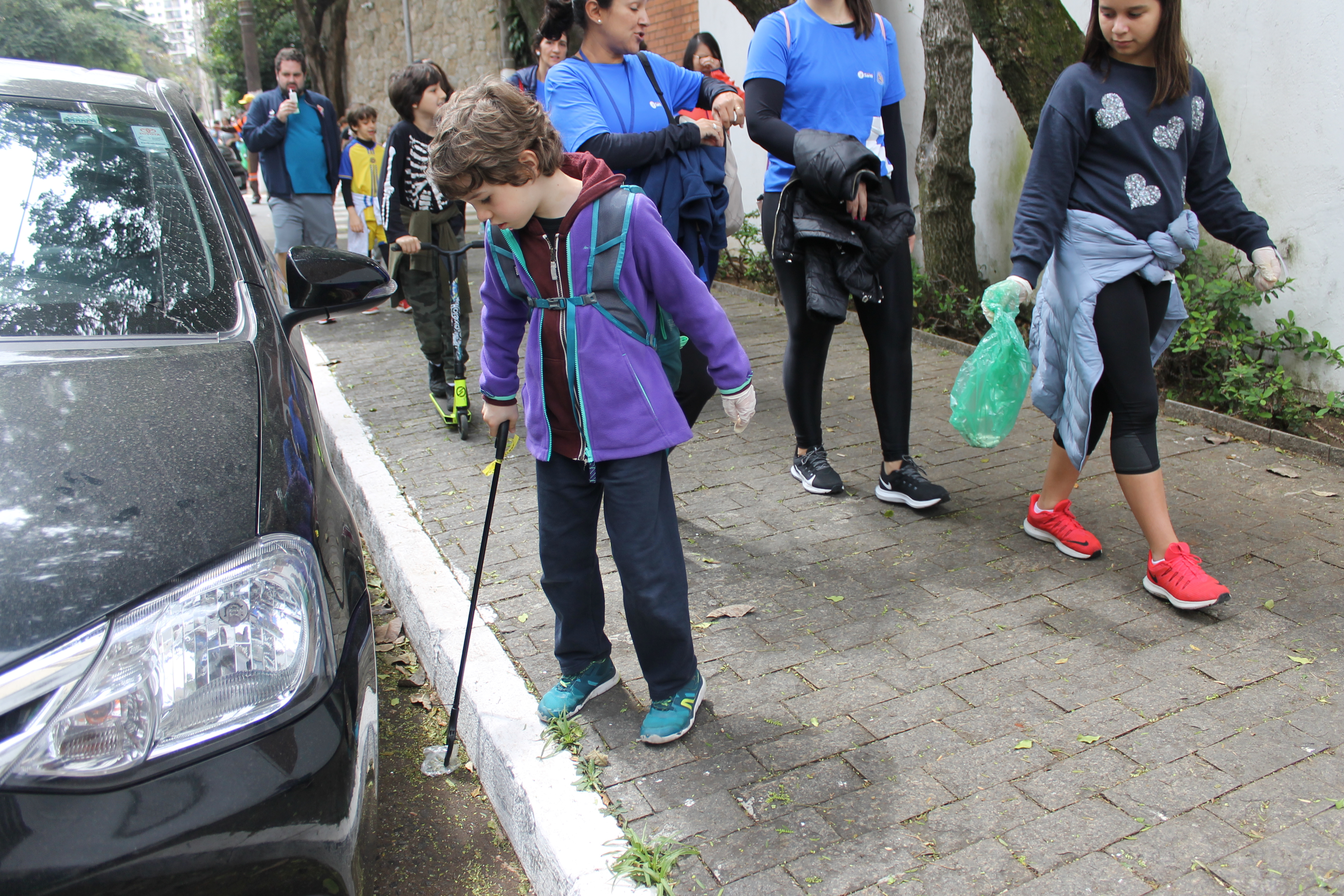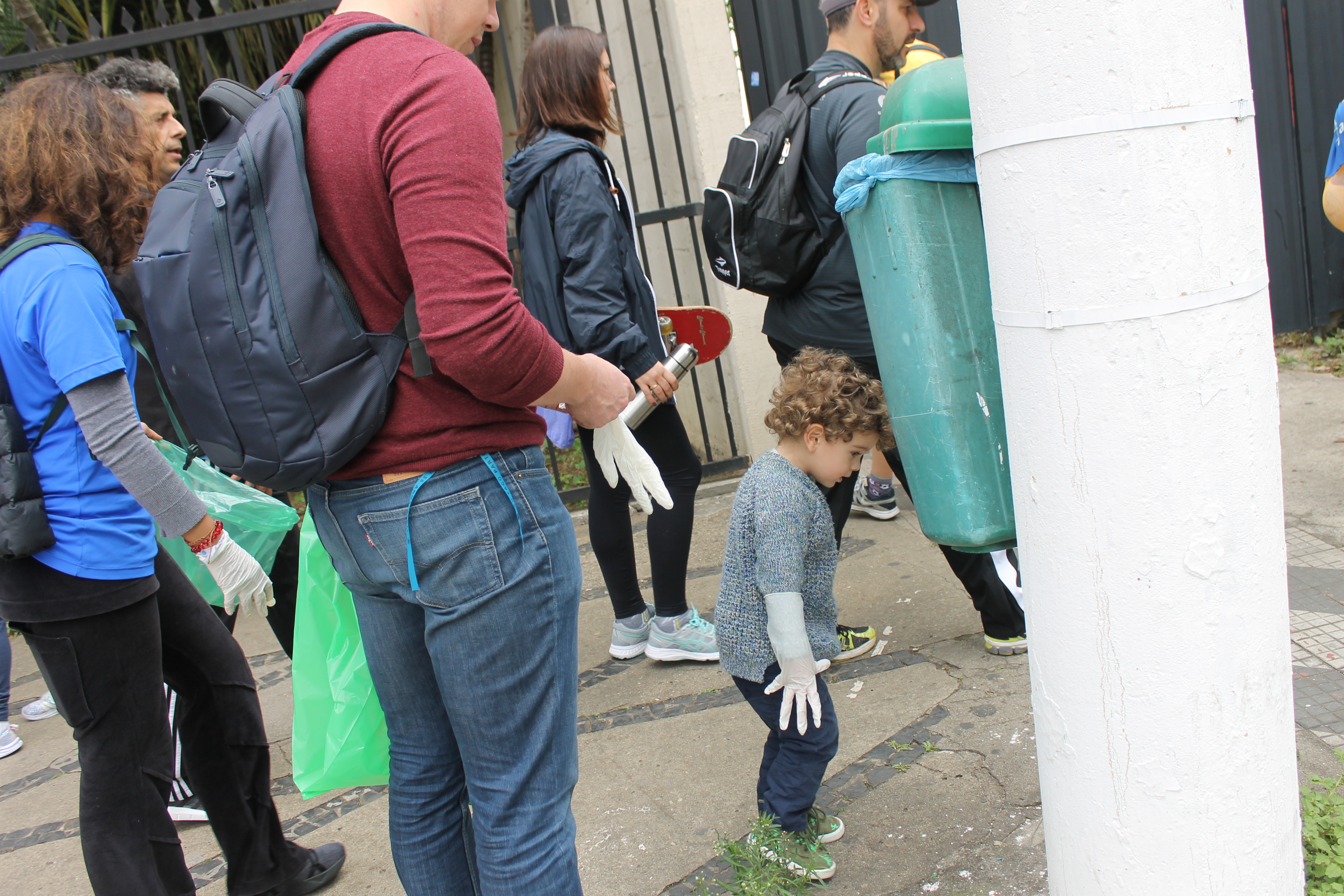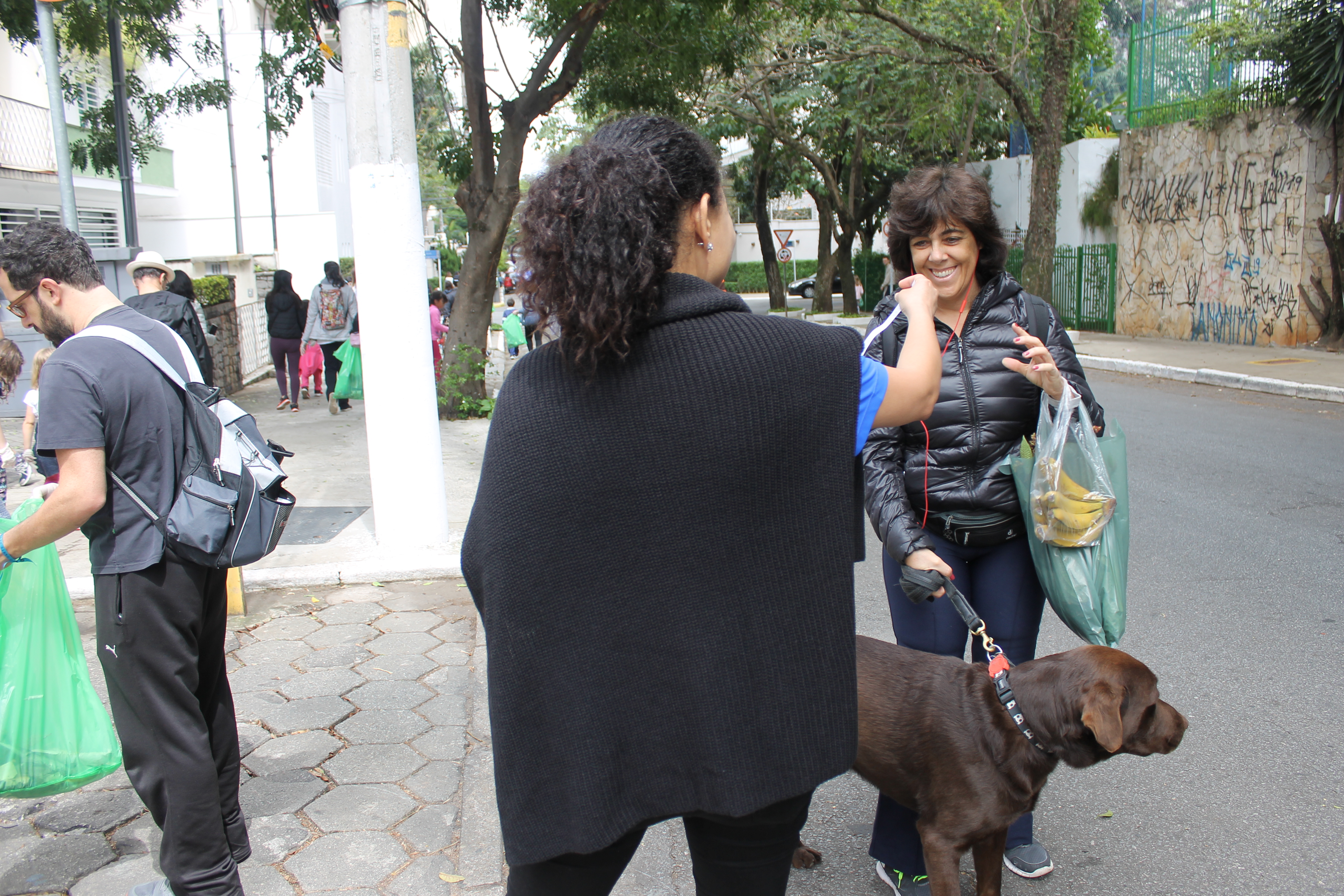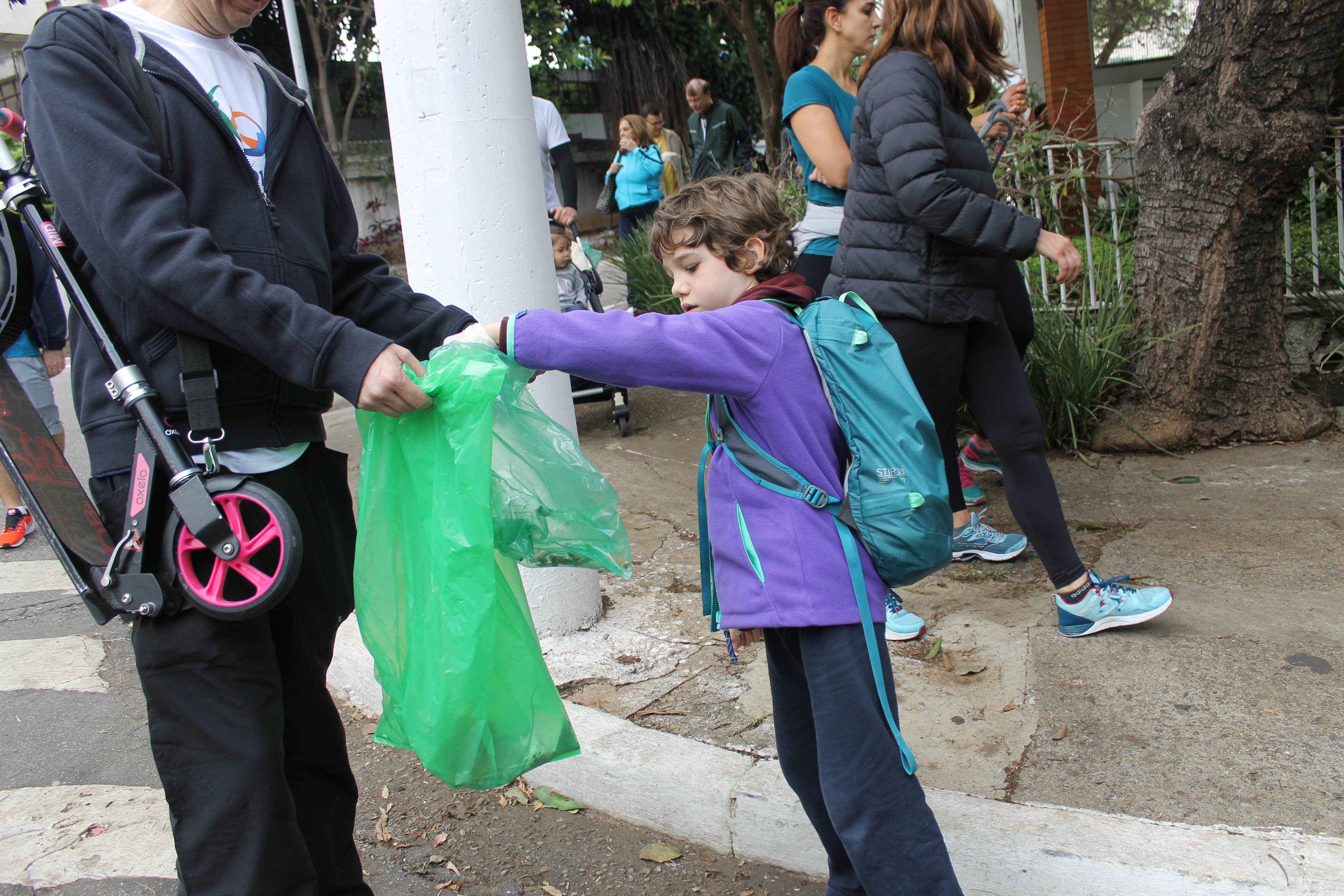 As meninas do EcoBairro estiveram presente na caminhada e trouxeram sacolas plásticas, luvas e um desafio: que todos recolhessem os microlixos durante a caminhada até o Parque do Ibirapuera. Ao final da caminhada teríamos uma surpresa!