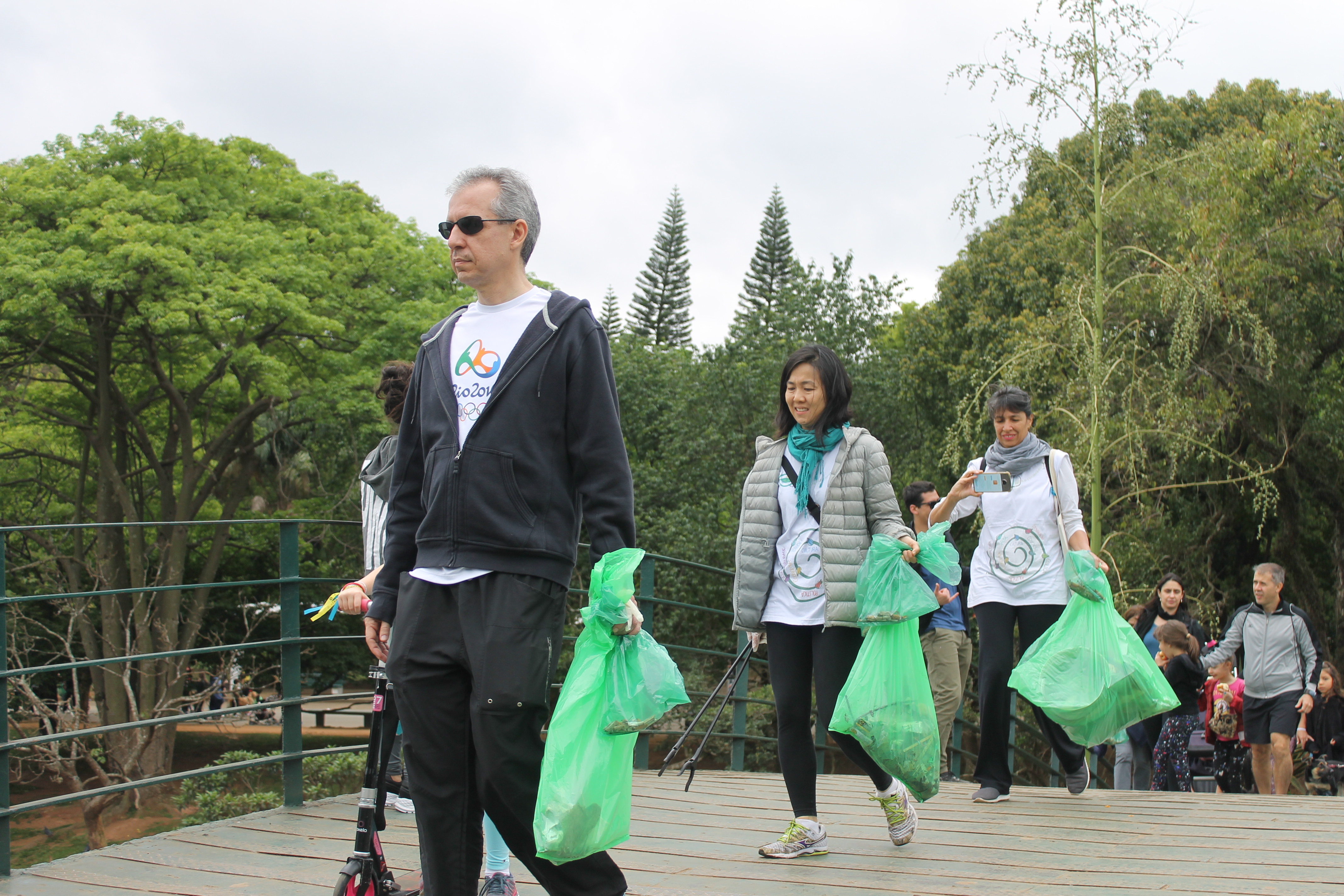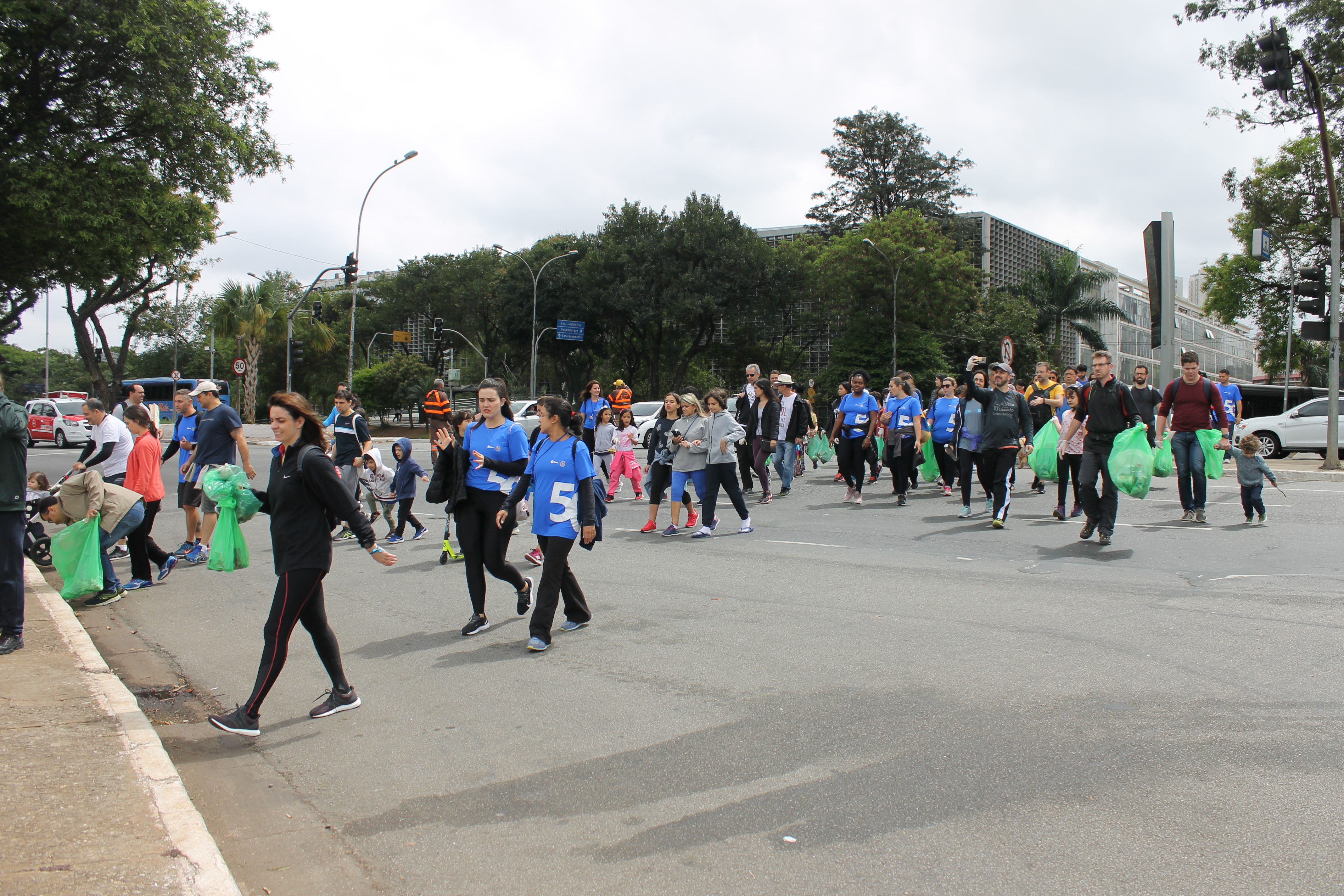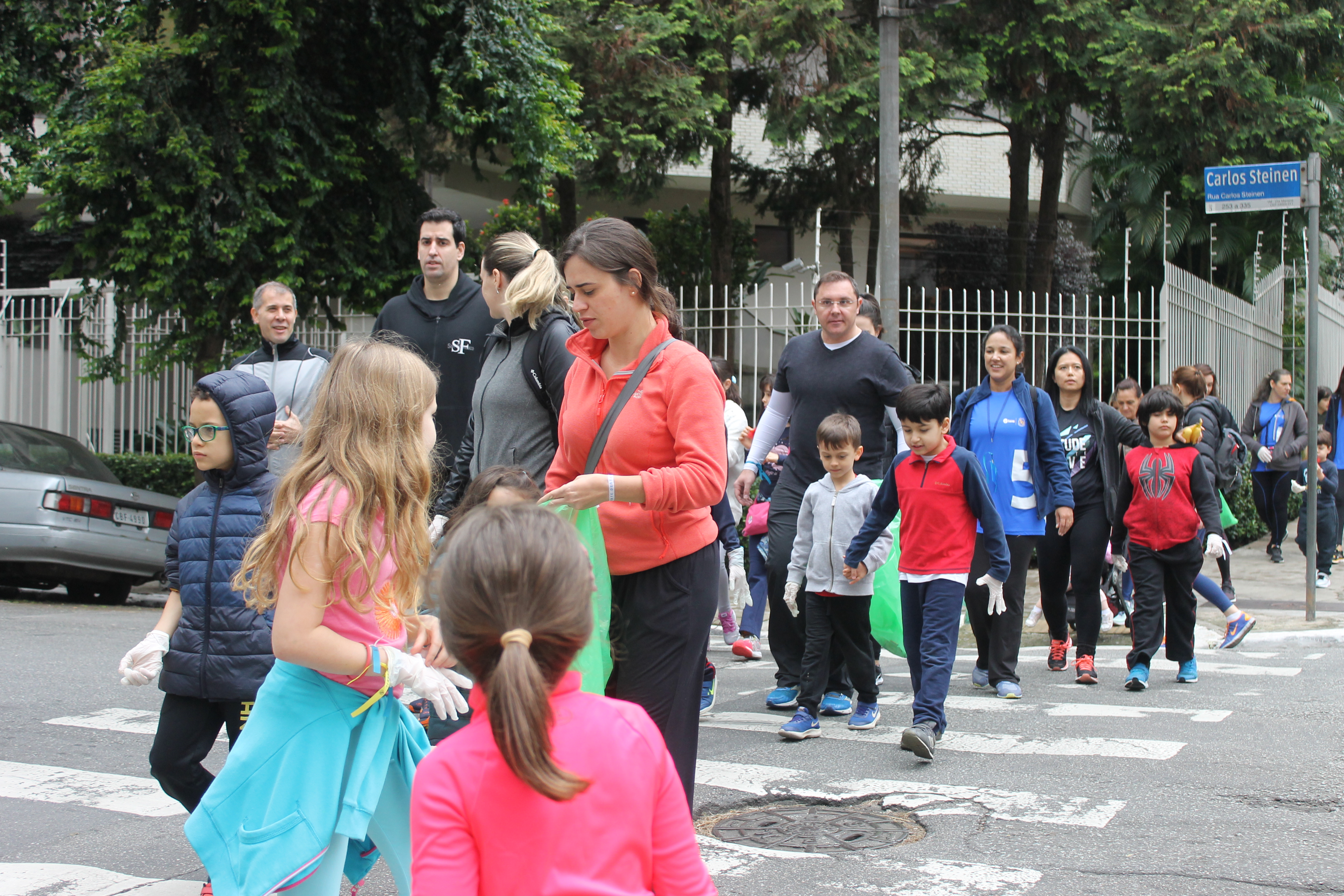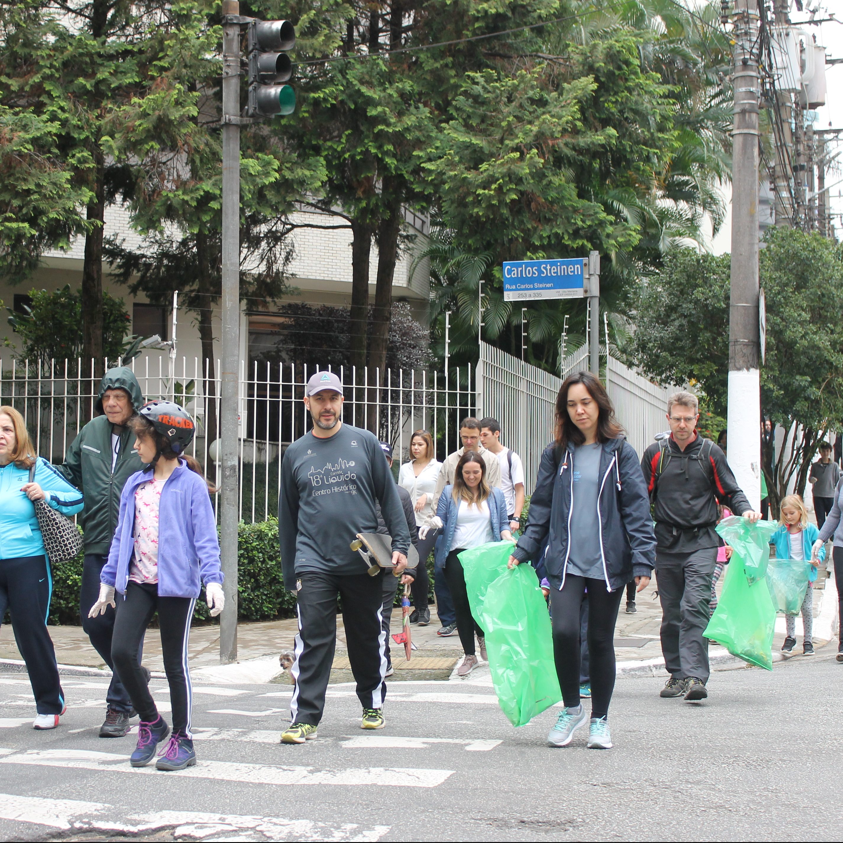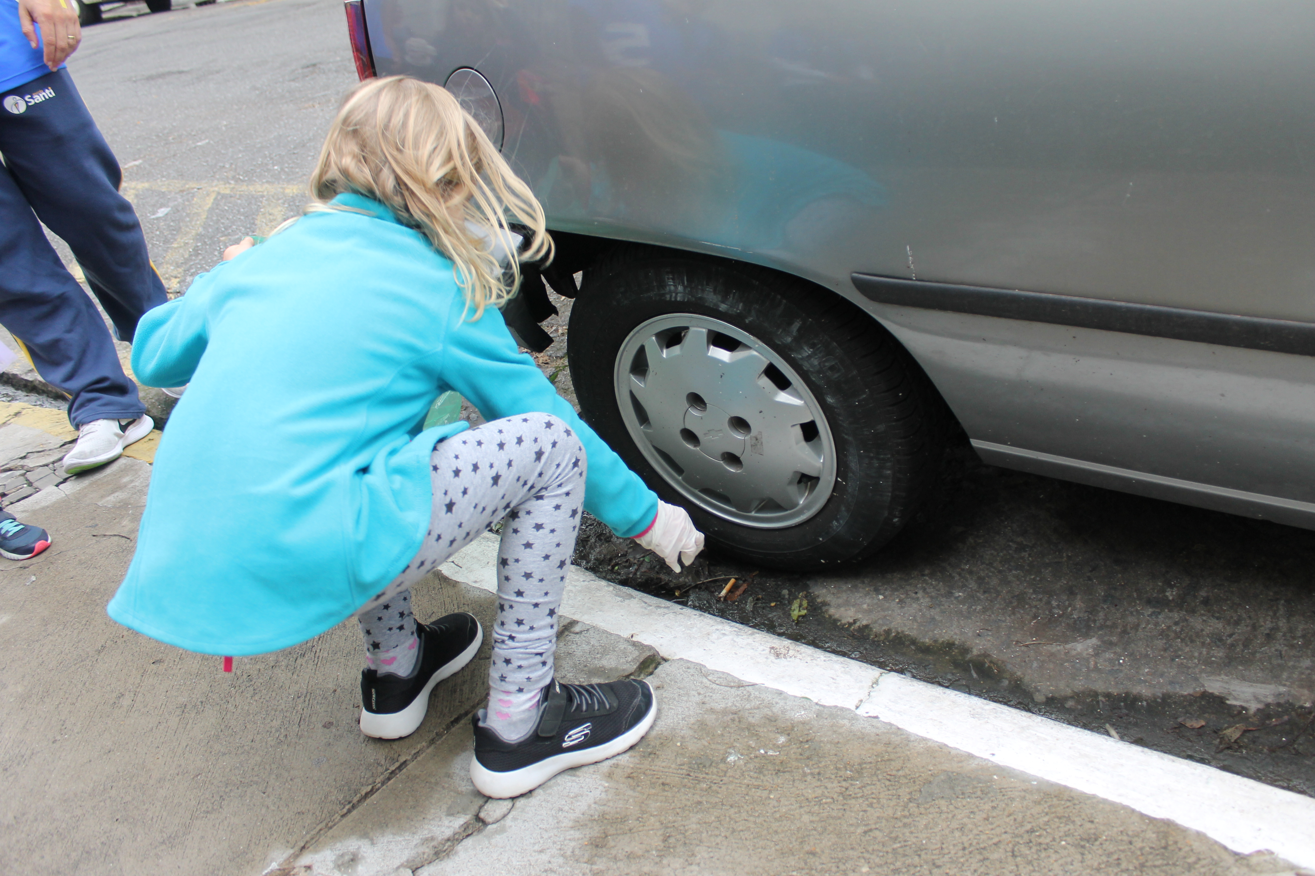 As meninas do EcoBairro estiveram presente na caminhada e trouxeram sacolas plásticas, luvas e um desafio: que todos recolhessem os microlixos durante a caminhada até o Parque do Ibirapuera. Ao final da caminhada teríamos uma surpresa!
