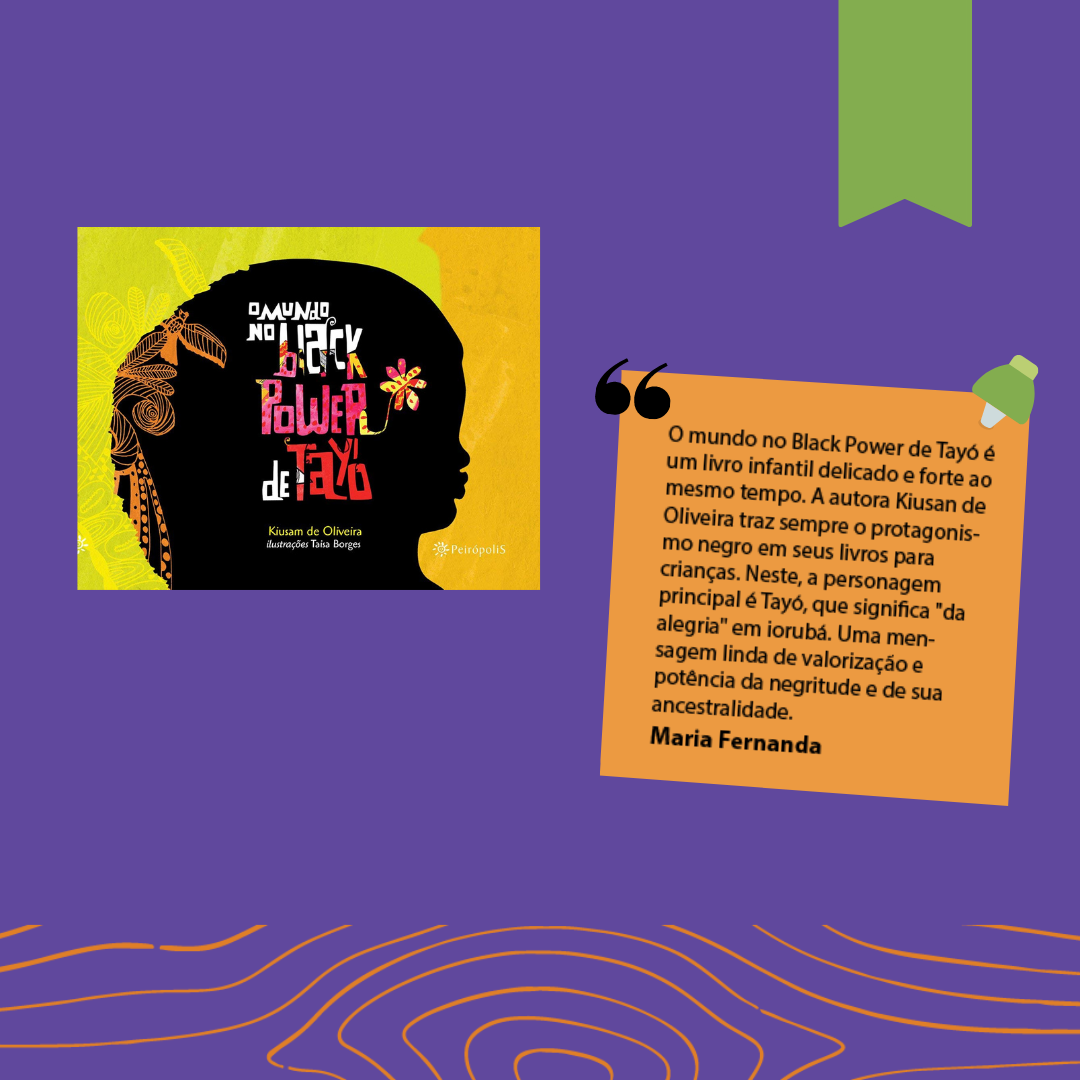 “O mundo no Black Power de Tayó é um livro infantil delicado e forte ao mesmo tempo. A autora Kiusan de Oliveira traz sempre o protagonismo negro em seus livros para crianças. Neste, a personagem principal é Tayó, que significa “da alegria” em iorubá. Uma mensagem linda de valorização e potência da negritude e de sua ancestralidade”, contou Maria Fernanda, integrante do Coletivo Antirracista da Santi e mãe da Lorena, do 1ºC.