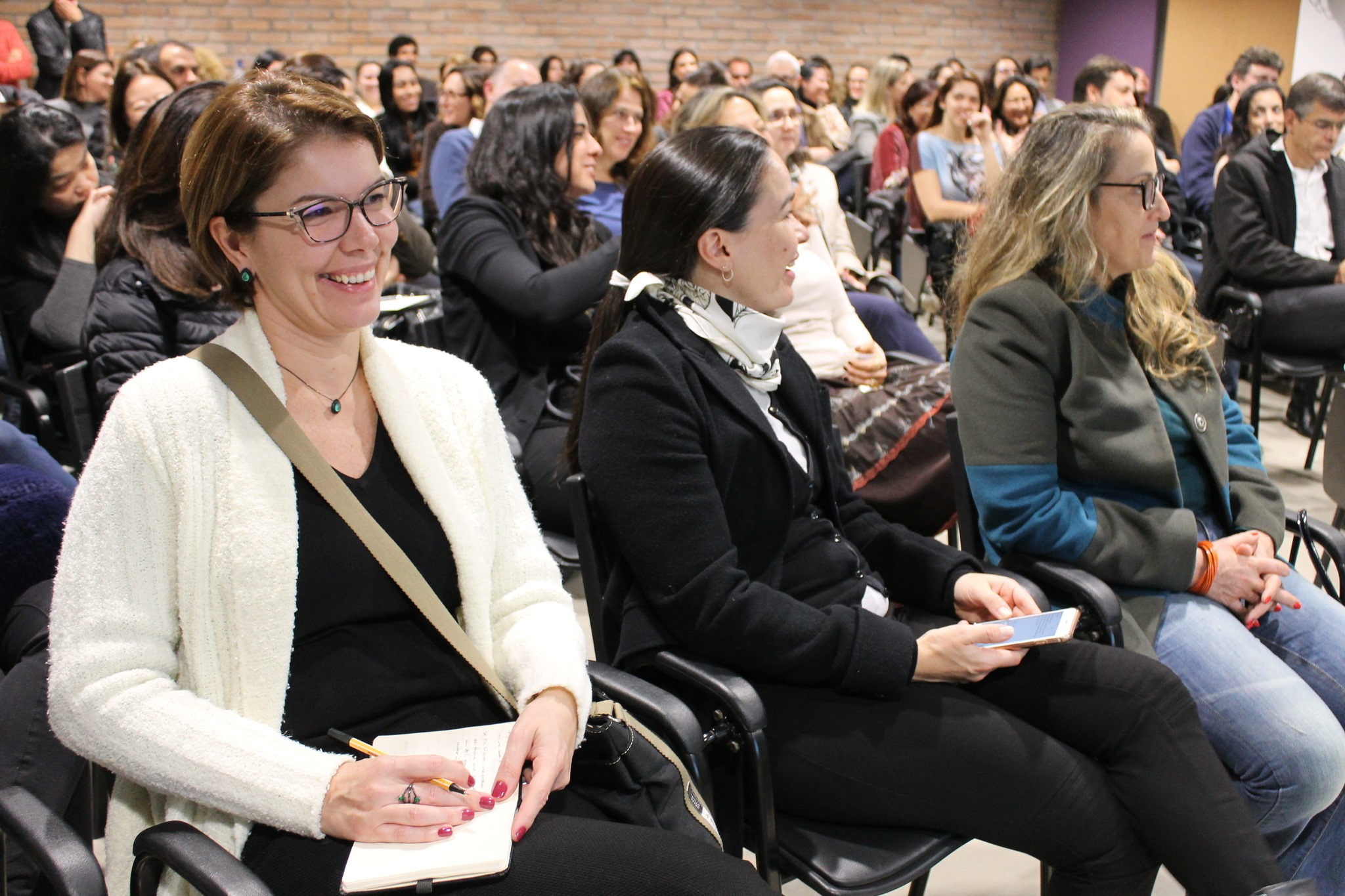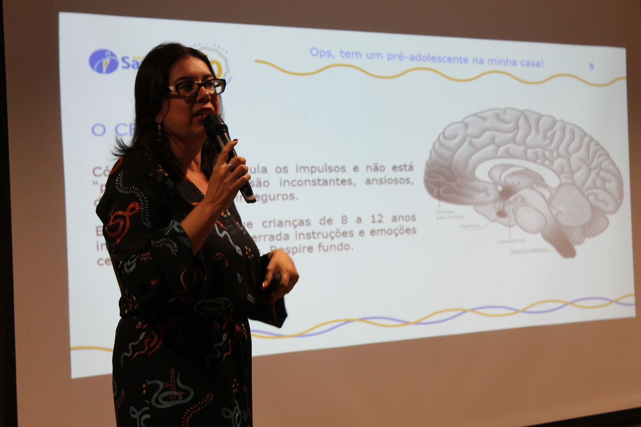 Auditório cheio para ouvir as dicas da jornalista e escritora Daniela Tófoli sobre como lidar com as questões inerentes a pré-adolescência, afinal, é nesta idade que, segundo ela, acontecem as mais significativas mudanças no cérebro, físicas, comportamentais e escolares. “Eles não são inconstantes, desatentos nem desajeitados, o cérebro está a mil e eles não conseguem focar nem se entender direito”, disse.