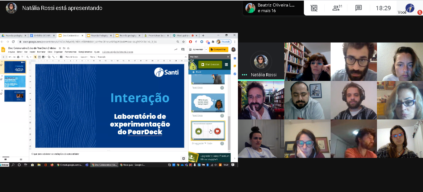 Pensando nisso, nossa equipe de TE apresentou duas novas ferramentas, o Hyperdoc e o PearDeck, que visam a interação, o protagonismo do aluno, a autonomia e o uso de múltiplas linguagens, qualificando assim ainda mais o processo de ensino-aprendizagem.
